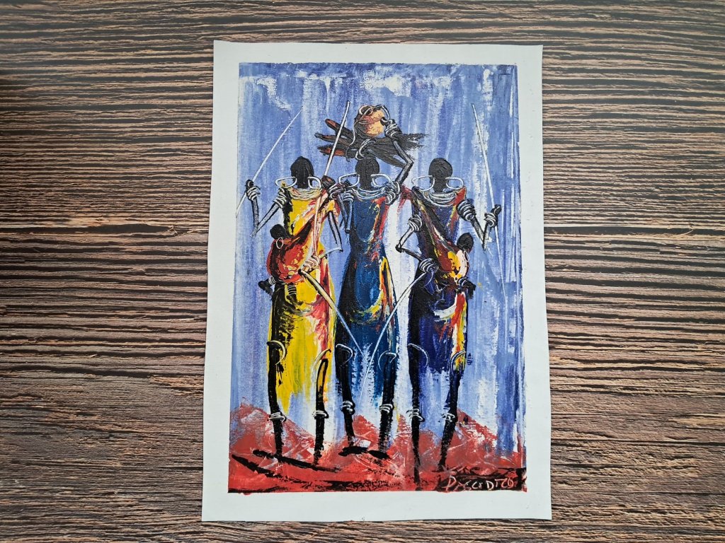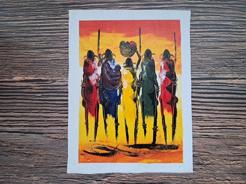 Tento ručně malovaný motiv masajských žen patří mezi autentické africké malby.