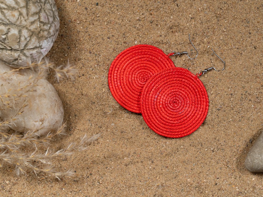 Netradiční červené náušnice ze sisalu
