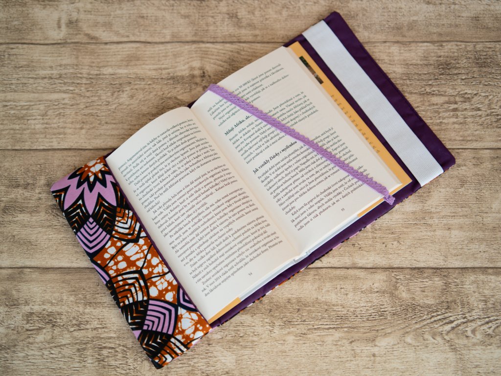 Krásný obal na knihu, z krásné látky, s všitou záložkou. V takovém obalu budou knihy jako v bavlnce. :)